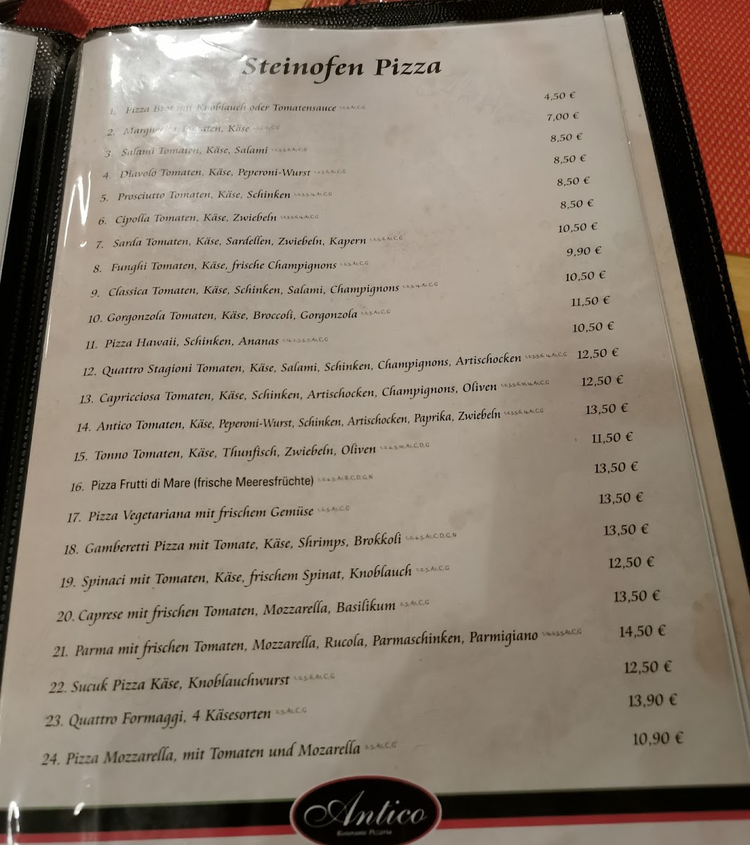 The menu at Pizzeria Antico offers a delightful selection of traditional Italian dishes, showcasing a focus on quality and authenticity. The star of the menu is undoubtedly the pizza, with options that cater to every taste. The dough is thin and crisp, while the toppings range from classic Margherita to more inventive choices like the Pizza Quattro Stagioni. For those with a sweet tooth, the Tiramisu is an absolute must-try, offering a perfect balance of creamy texture and rich espresso flavor. The pasta dishes are equally impressive, with the Spaghetti Carbonara standing out for its creamy sauce and generous portions of pancetta. If you're in the mood for something more substantial, the restaurant’s meat and fish selections, such as the Ossobuco and Grilled Salmon, offer a satisfying experience. Overall, Pizzeria Antico’s menu combines traditional Italian flavors with a warm, inviting atmosphere, making it a go-to spot for authentic Italian dining in Frankfurt.